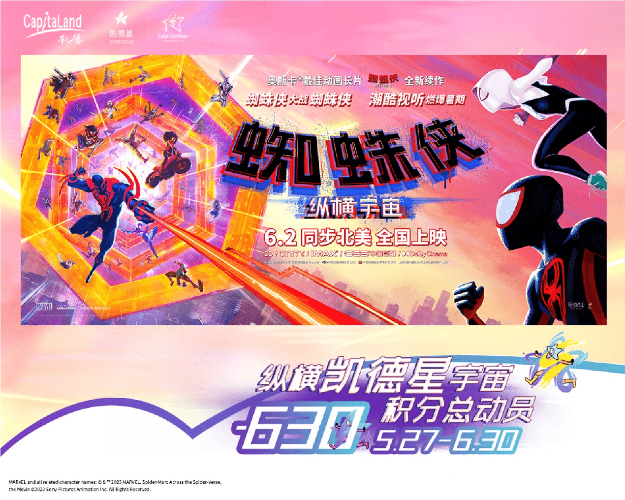 继奥斯卡最佳动画长片《蜘蛛侠:平行宇宙》之后,时隔5年,其传奇续作《蜘蛛侠:纵横宇宙》定档6月2日,同步北美在全国上映。凯德作为电影出品方索尼影业在中国商业地产行业的独家合作伙伴,旗下购物中心内的院线将同步上映电影,并推出覆盖线上线下的一系列电影主题联合推广活动,为消费者带来一场链接全球、纵横宇宙的视听狂欢盛宴。