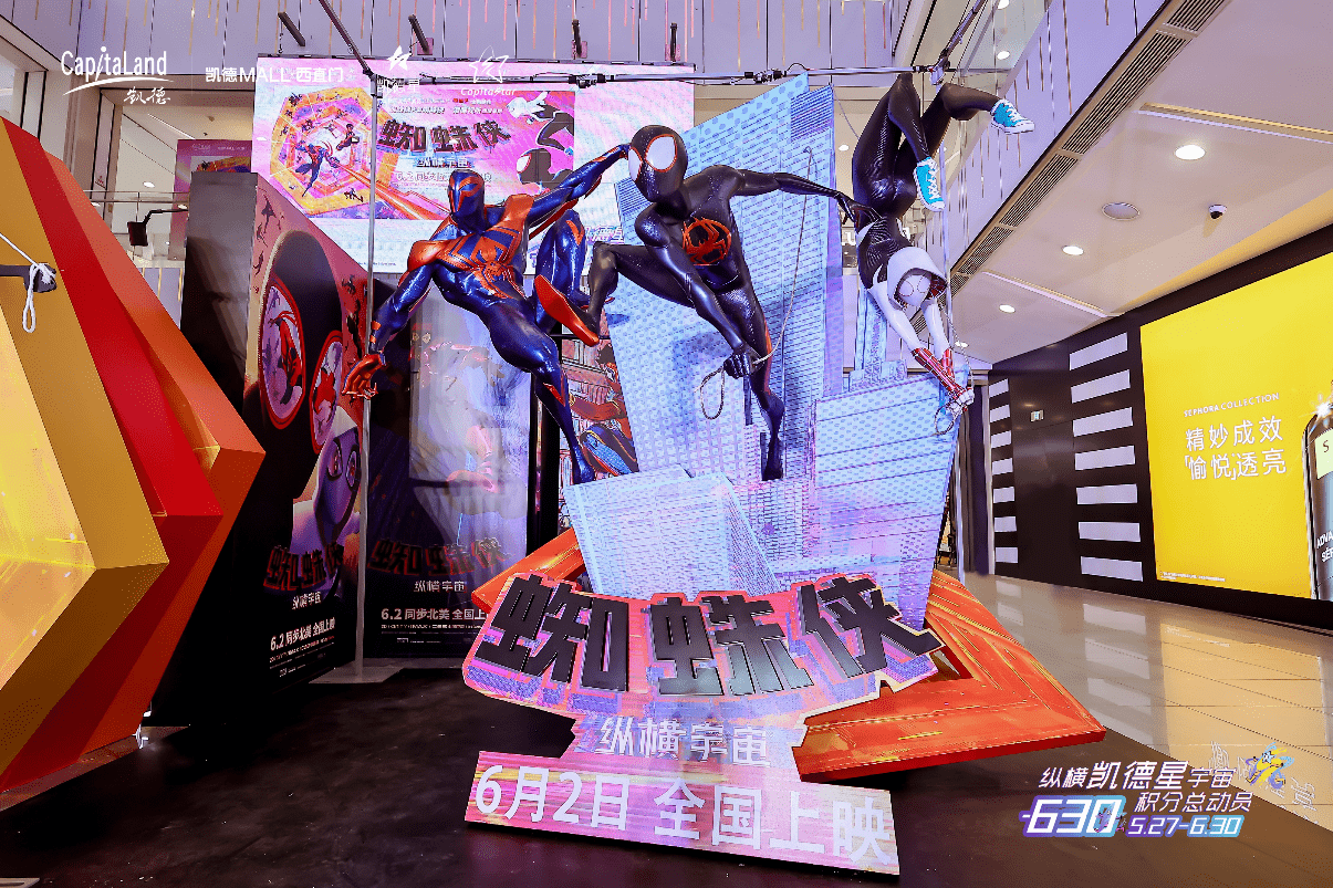 由凯德联合索尼影业推出的《蜘蛛侠:纵横宇宙》电影联合推广主题系列活动,不仅有沉浸式电影美陈、互动体验展、专场观影体验、号召粉丝电影角色COSPLAY,更有电影官方限量周边限时免费发放,为消费者带来多元化、多感官、多惊喜的国际潮流新体验。