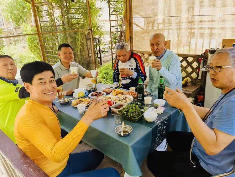 昨天与两位骑友计划参加一骑行队野餐活动,到达目的地后活动取消,临时改为去同事骑友老朱家聚餐,恰好赶上他65周岁生日,八位骑友为他庆生,场景喜庆欢乐,喝的是不亦乐乎。