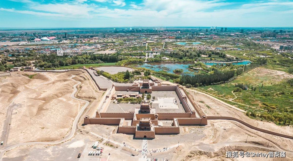 从高处俯瞰,外城、内城和瓮城三重关城清晰可辨。城内现代城市规划下的绿意盎然,城外依旧是望不尽的黄土戈壁。几百年过去,城内城外依旧泾渭分明。