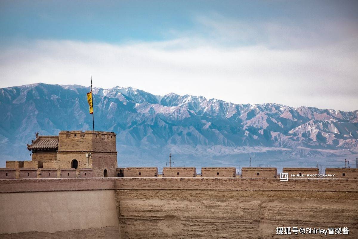 走进关城,沿马道登关楼,三座三层三檐歇山顶式关楼一字排开,气势如虹。角楼分布于内城四角,烽火旗在风中簌簌摇摆;举目远眺,终年积雪的祁连山迤逦巍峨,一片苍茫。古往今来,不知有多少金戈铁马、醉卧沙场的英雄史诗淹没在河西走廊的时光长河中。