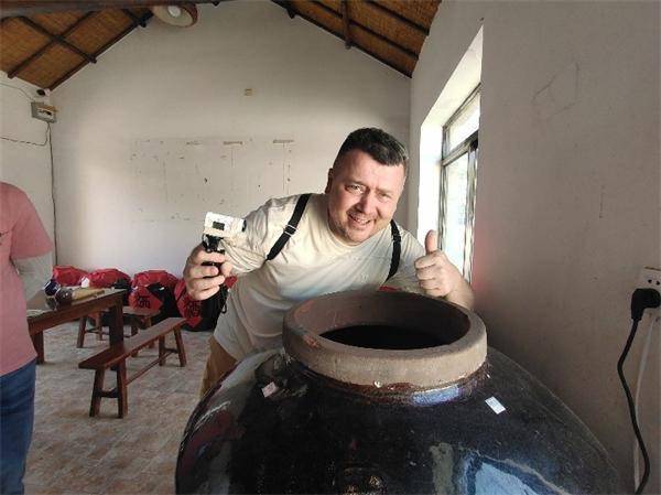 俄罗斯网红斯拉瓦点赞石河村的酿酒工艺 摄影 杨薇