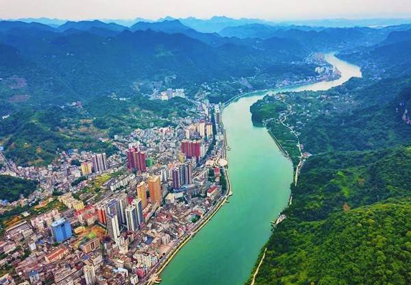 上图:湖北省宜昌市长阳县城龙舟坪镇山环水绕的美丽自然风光。
