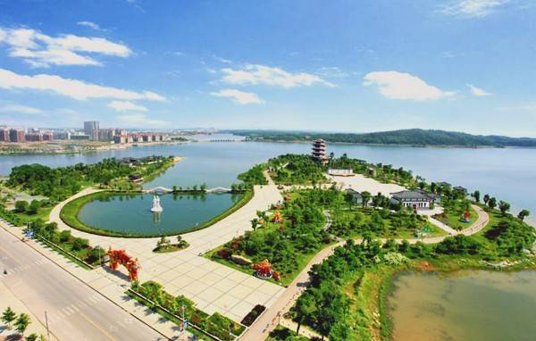 上图:湖北省咸宁市嘉鱼县三湖连江处的二乔公园自然与人文景观。