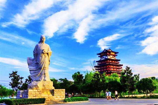 上图:湖北省直管县级市天门市中心的陆羽广场上陆羽雕像与茶经楼。