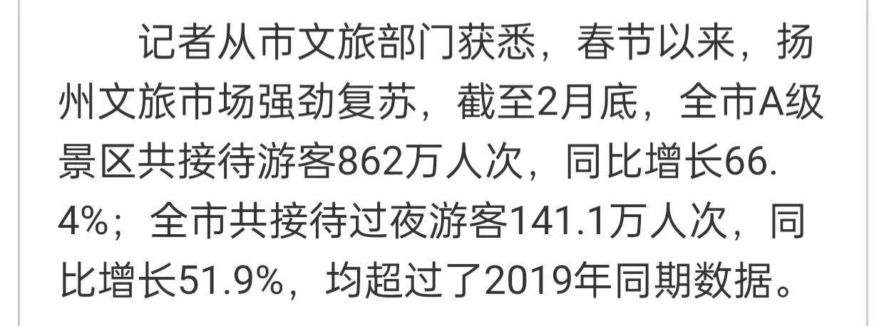 说“烟花三月下扬州”,绝对名副其实。所有前往扬州的游客都被这里的美景所折服。今年一季度,扬州接待游客人数同比增长30%以上。