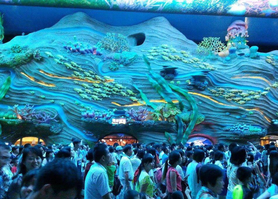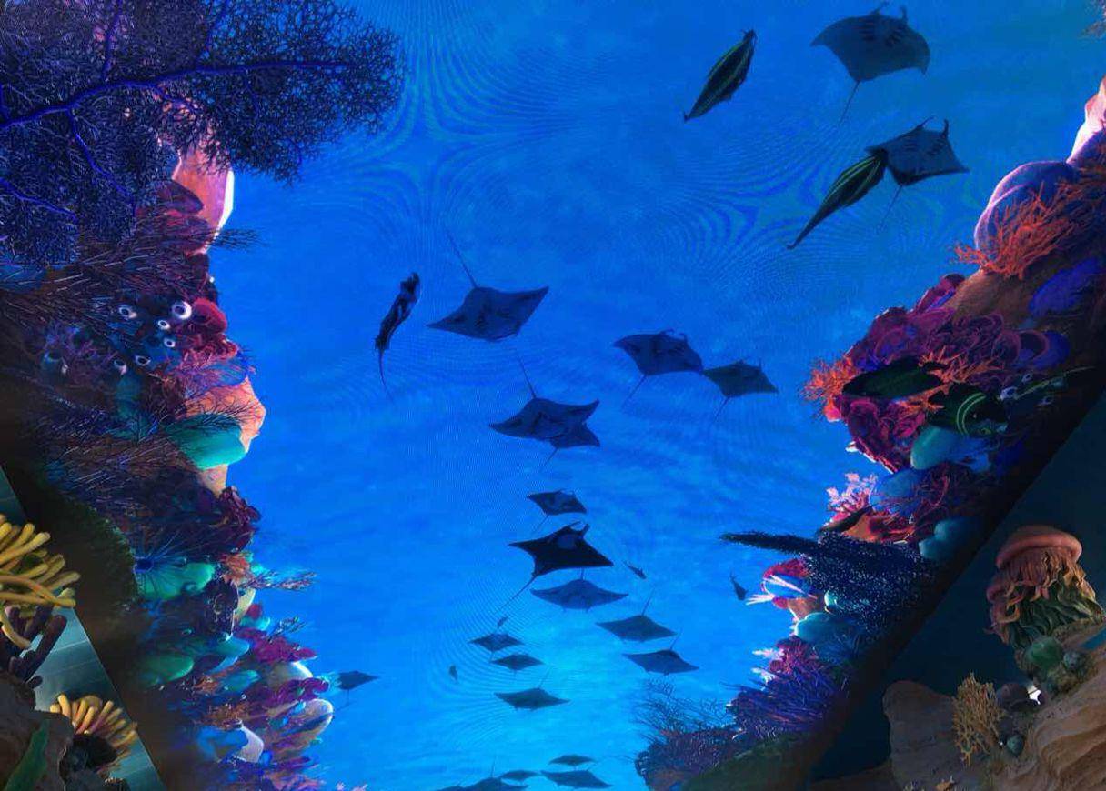 当你走进海洋馆后你就会感觉到自己就像是走进了海洋中一样,十分的清爽,令人倍感震惊,在这里的走廊设计都是很有特色的,周围的都是非常大的亚克力玻璃,会把各种各样的鱼都想真的一样呈现在你们的身边,让你感受到身临其境的感觉,就犹如自己真正的走在了海洋中的一样,在这个海洋馆当种一共饲养了一万五千多条鱼,品种各有不同,各有各的特色令人倍感震惊。