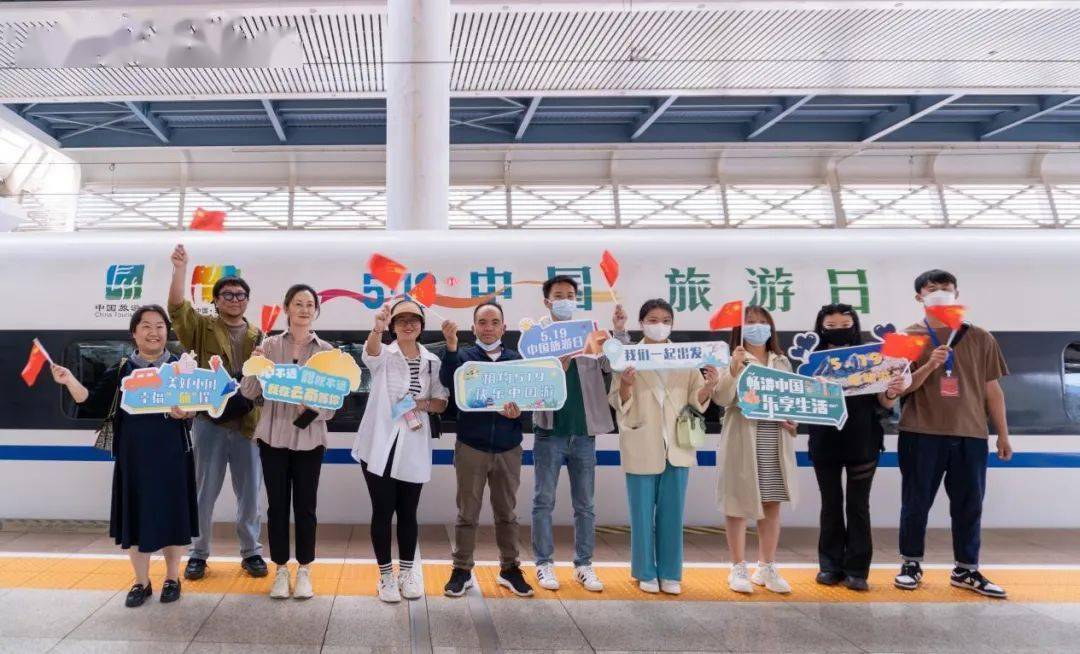 祖国大地上,风驰电掣的“5·19”高铁列车在“五一”假期与旅游客流热情相遇。主题专列共运行68趟,总停靠站点1360站次,总运行里程超19万公里,触达超50万人次。专列外车身喷绘“5·19中国旅游日”字样和标志,车厢内温馨清爽的主题氛围让全国各地旅客带着对“中国旅游日”的美好向往驶向幸福旅程。