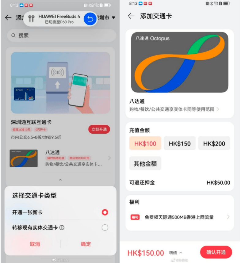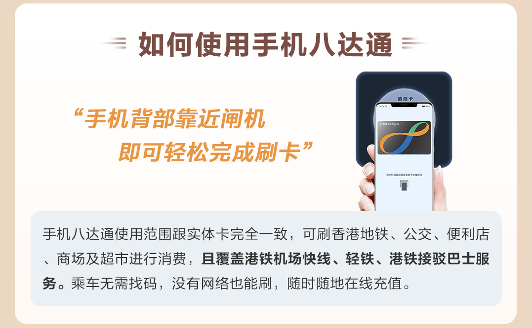 借助华为手机的NFC功能,在乘坐地铁、公交和巴士等公共交通工具时,无需解锁或亮屏,即可刷卡通过。更为便捷的是,即使手机没有网络连接或电量不足,仍然可以正常使用。而且,八达通卡不仅能服务于出行需要,还能在就餐、购物和游览景点等多个场景中使用,为香港之行提供全方位的便利。