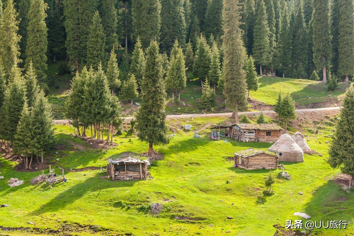 新疆有很多地方值得一去再去,如果你喜欢完善的服务,等旅游开发之后再去;如果想看接近原始的自然风光,现在就去。琼库什台目前还是一个隐秘的小村,只有一条道路可以进入,返回特克斯的途中,挺拔的雪峰错落有致地环抱着杉林和草原,由浅到深的绿色一直延绵至视线尽头,很多手机壁纸一样精美的景观,当自己上路才能感受。