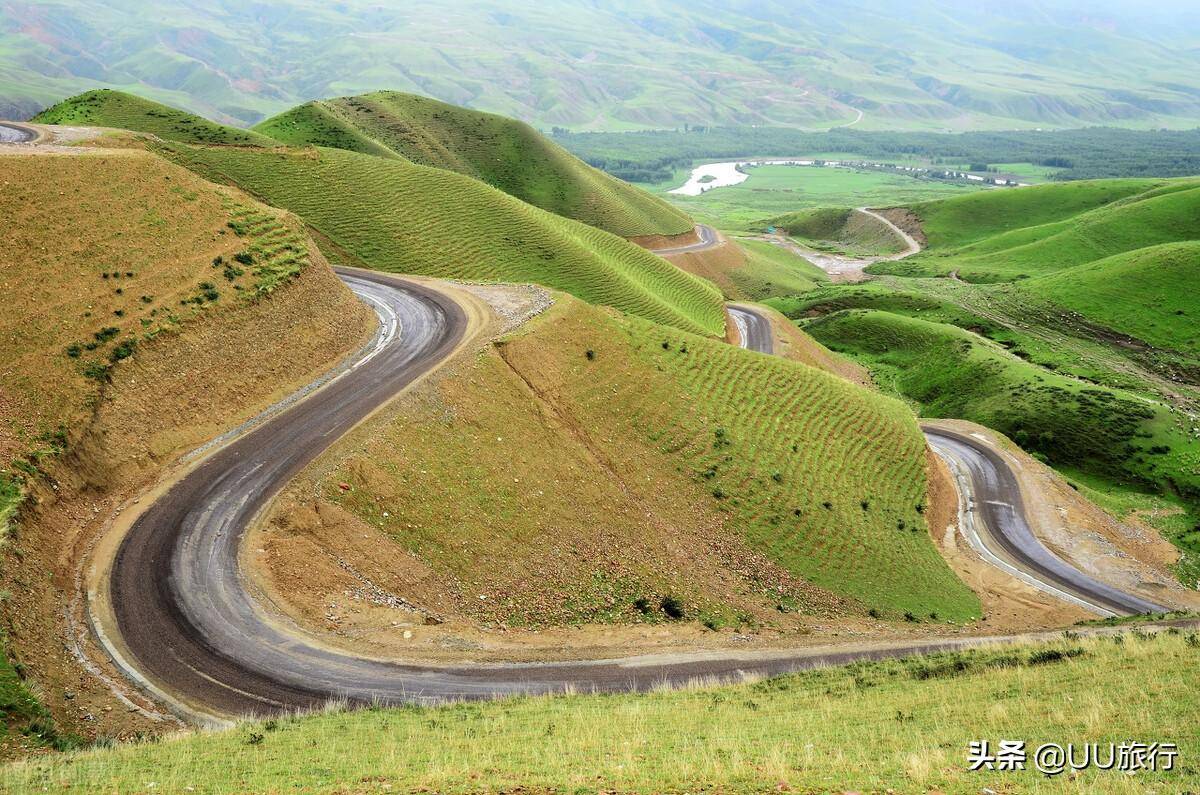 往喀拉峻草原深处行进,山路十八弯,往返180公里的道路,大部分路段已经通柏油马路,偶尔会遇上修路。路面比较窄,弯道比较多。一方面是不敢开快,另一方面是沿途的景色太多美丽,舍不得开快。翻过4座山头,经过两处观景台之后,抵达琼库什台。在第二个观景台的二楼,可以俯瞰曲线优美的人体草原。