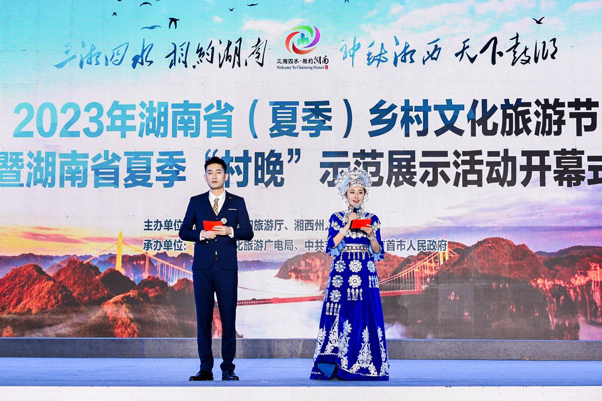 夏夜带来阵阵清凉,晚风卷起丝丝茶香。6月3日晚,2023年湖南省(夏季)乡村文化旅游节暨湖南省夏季“村晚”示范展示活动在湘西州吉首市隘口村开幕,徜徉在茶乡的山清水秀中,天下鼓乡吉首发出夏日的浪漫邀约。