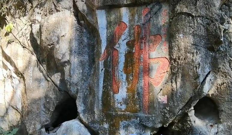欣赏着水源洞景区优美的自然风光,我们缓步而行,来到了今天要登录的水源寺。远远望去,斑驳的石壁上刻着一个巨大的佛字,处处高处。崖壁上还刻有许多石刻。据说数百年来,水源寺香火旺盛。不少文人墨客来到水源洞石壁前留下石刻近百件。这些石刻的内容,有写自然的,有议论政治的,有抒发情感的,具有很高的书法价值、人文价值和历史价值。因此,这些石刻也成为了水源寺必去的重要景点,千万不要小看哦!