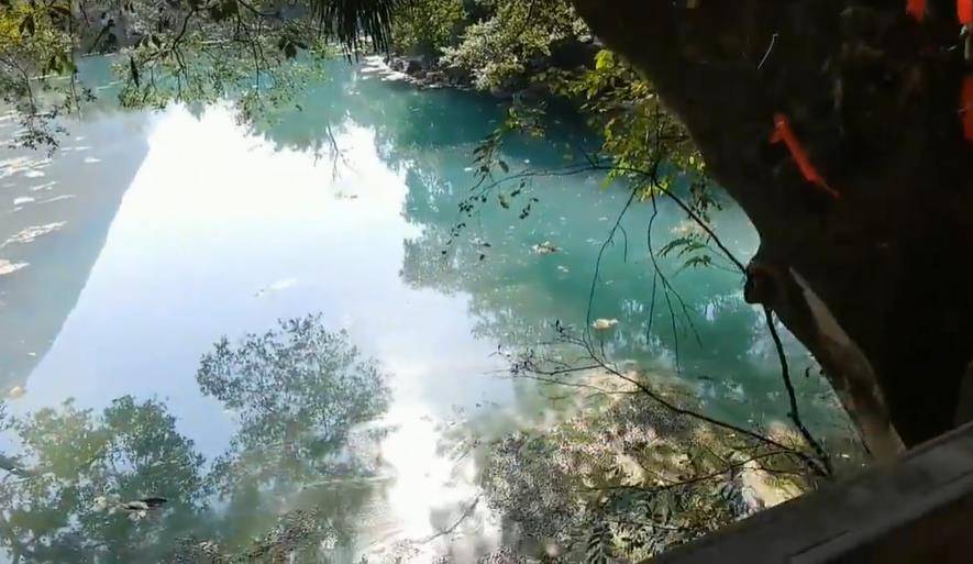 从百色市区开车到水源洞。路程约70公里,约一个小时左右。我们首先到达水源洞景区。进去之后就可以去水源寺了。景区自然风光秀丽,洞外古木参天,河水碧波荡漾。别说,还真有点像荔波小七孔上面的那条河。这里游人众多,香火旺盛。据说在这里拜佛很灵验!