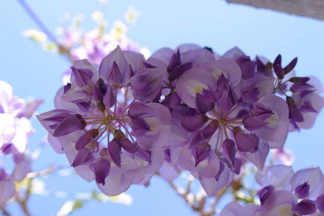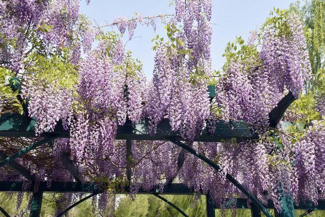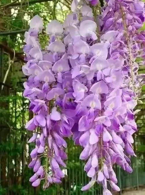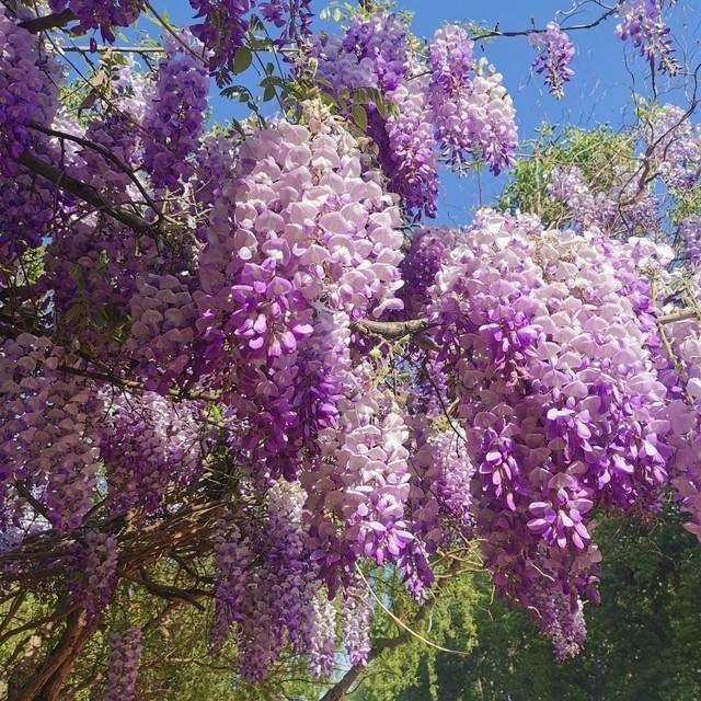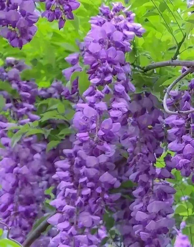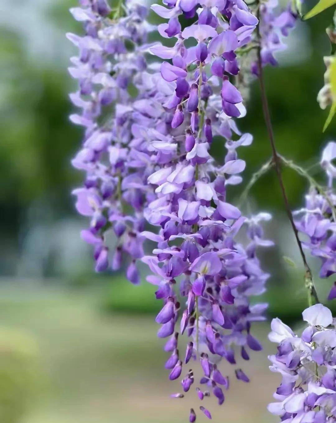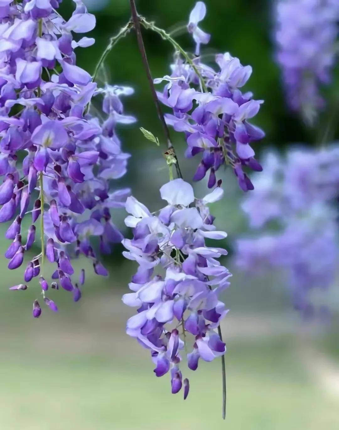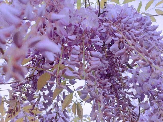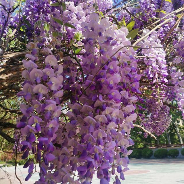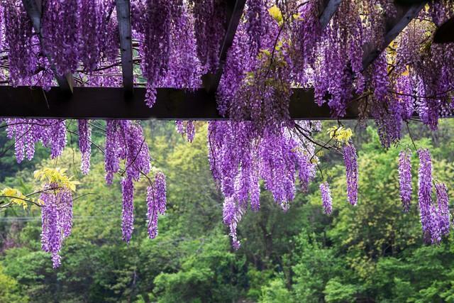 粗壮的藤蔓扭曲成一片花海,如瀑布般流淌,震撼人心,可爱得让人移不开眼,紫色的仙境让人沉醉。远远望去,犹如一朵紫云,春意盎然。