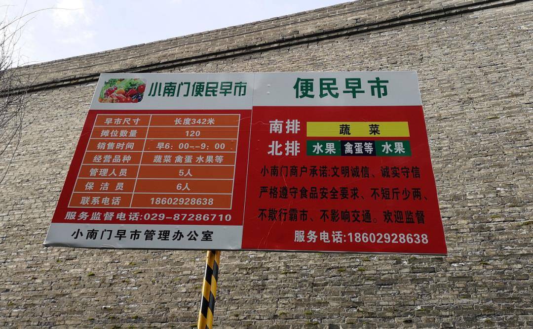 小南门早市设有专门的行政办公室。莲湖区北园门街道办事处部分工作人员和市场负责人会定期实地检查小南门早市的运行情况,服务监督电话也挂在早市上。邮件。文明诚信、诚实守信、严格遵守食品安全要求、零瑕疵、不影响交通等,早已成为小南门早市商户的约定俗成。