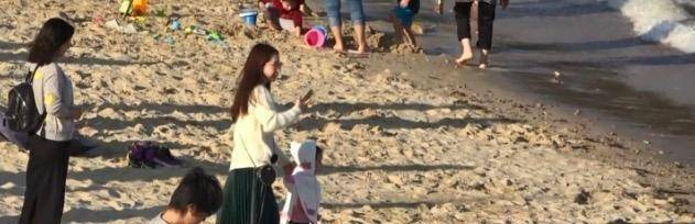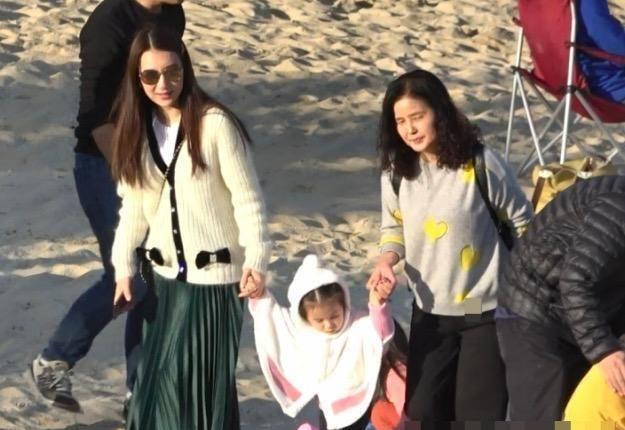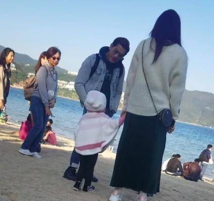 这时无暇分身的郭天王,只好由老婆方媛以及岳母带着大女儿去沙滩游玩,不过似乎大女儿chant对沙滩并没太多的兴趣,只是静静地看着海,并没有像其他小朋友一样去玩泥沙。