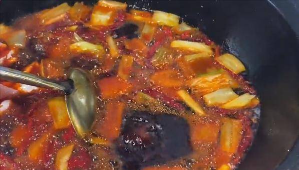 而干炒鸡的做法更是特别,首先要熬油,加葱姜和各种调料、火锅底料等熬煮的油颜色偏红,闻着就很香辣,光是熬油就要花费好几个钟头,然后新鲜的鸡肉下锅,加辣椒花椒大葱土豆和各种调料熬鸡,五斤左右的散养鸡,熬半个小时才能出锅,外皮酥脆里面已经入味非常鲜嫩,吃起来又嚼劲又不会柴,麻辣鲜香层次感分明,越吃越香,下饭下酒都是绝配。