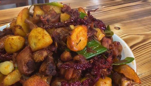 鸡肉是一种营养丰富的肉菜,深受老百姓的喜爱,关于鸡肉的做法也是多种多样,有白切鸡白宰鸡红烧鸡块黄焖鸡,像山东的炒鸡就很出名,而在新疆又流行吃大盘鸡。今天我们来到了甘肃的西和县,这边有一个小镇上,开了一家农家菜馆,靠着自创的干炒鸡扬名,有客人不远千里来吃。