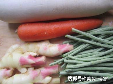 白萝卜、胡萝卜、豆角、嫩姜、白酒、花椒、八角、盐