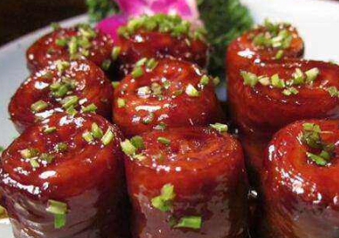 九转大肠,九转大肠原名为红烧大肠,是山东省济南市传统名菜。清朝光绪初年,由济南九华林酒楼店主首创。将猪大肠经水焯后油炸,再灌入十多种作料,用微火爆制而成。成菜后,酸、甜、香、辣、咸五味俱全,色泽红润,质地软嫩。画面中的这道美食看着真有食欲啊!如果你三天没有吃饭了,你会选择吃这种美食吗?