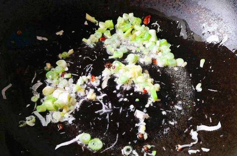 2. 葱姜切末,另起锅放入油,锅热后放入花椒,葱姜爆香,