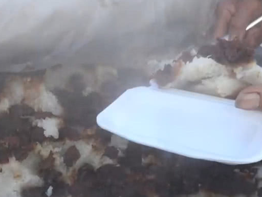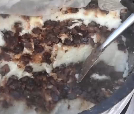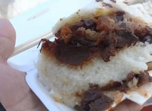 图中展示的这种,就是我们今天的主角了。售卖这种小吃的是一位年龄将近70岁的老大爷,一个非常大的铁桶,裹着很多层的白布,据说是用来保温用的。上面盖着一个木制的盖子,同样也是裹了很多层的白布的。所以不知道的人就很容易会忽视它了。