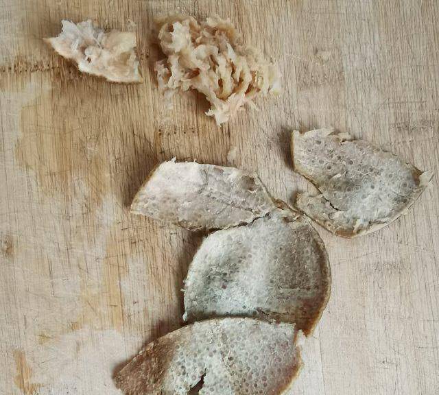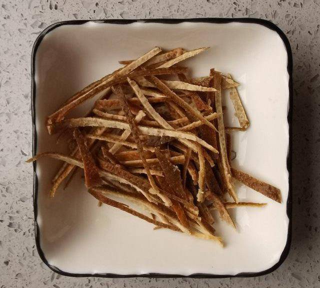 第3步、15年陈皮洗干净浸泡一小时,用刀刮掉里面的淀粉白瓤,(浸泡陈皮的水不要倒掉)。
