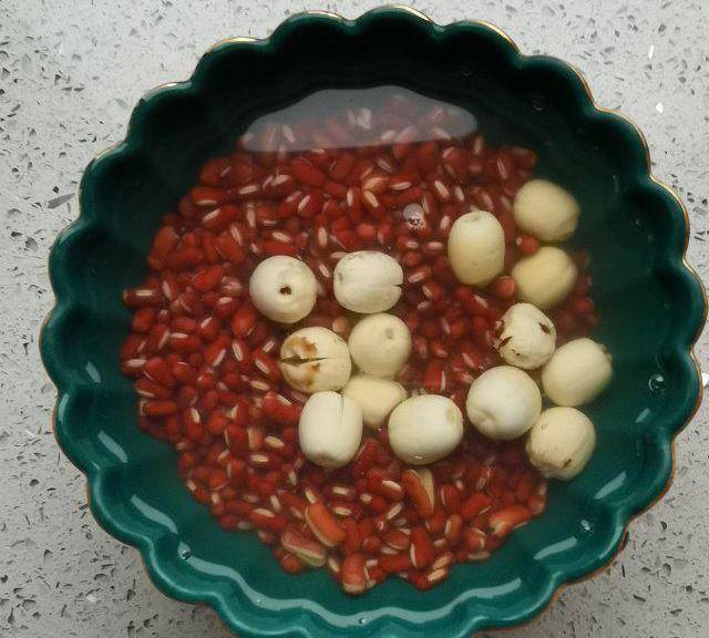 第2步、赤小豆和莲子洗干净浸泡一晚上。