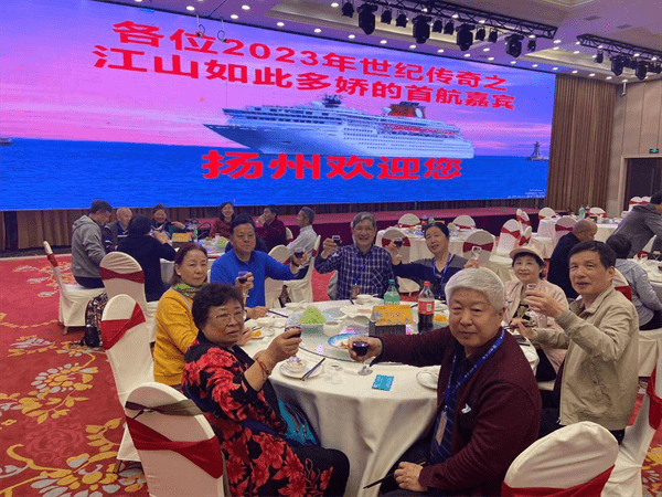 当天,乘坐“世纪传奇”号的中外游客前往扬州瘦西湖、大明寺、东关街等景区游览,深度领略扬州十里春风的清新气息,烟花三月的繁花似锦,厚重灿烂的历史文化,并品尝正宗的淮扬菜。为了让游客有更好的文化体验,经扬州市文化广电和旅游局牵头联系,特意聘请知名学者上船,开设“淮扬文化名家讲坛”,并专门聘请扬州知名早茶“冶春”团队上船现场制作,扬州曲艺演艺人员上船表演,开设扬州曲艺专场,使中外游客在船就能体验扬州皮包水早茶文化和丰富的非遗文化。