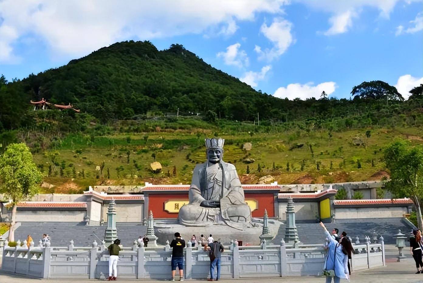 在清水岩附近,会有一个很宽阔的清水广场,在那里可以看到当地居民雕刻的巨大清水祖师像。广场正前方是一个湖,鱼儿在湖里游来游去。