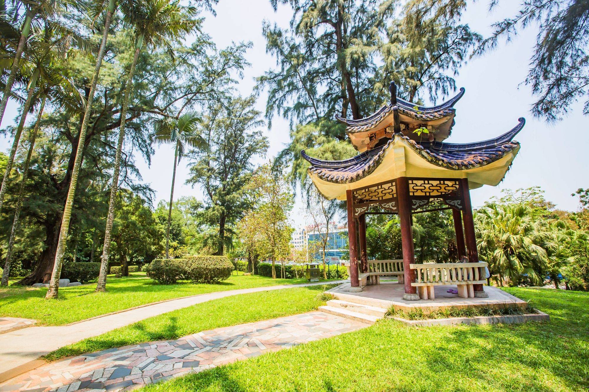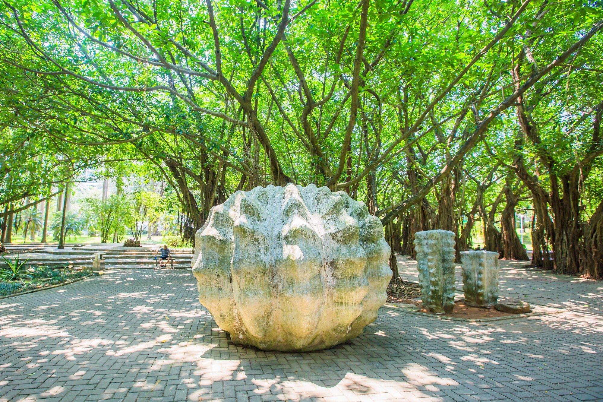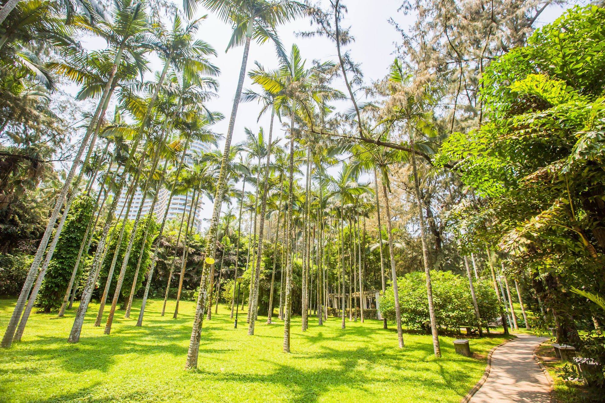 高大的椰子树打造出属于海滨小城的风情,园内阳光明媚,空气清新,小路曲径通幽,相比于总是热闹的银滩,海滨公园倒是别有一番清幽。