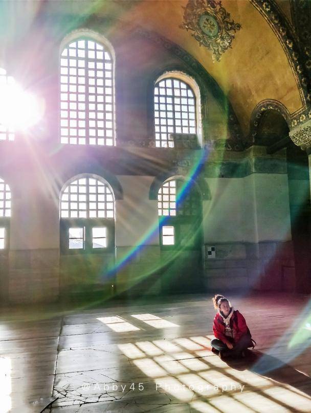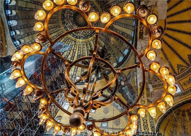 想当年君士坦丁大帝请来的数学工程师们发明出以拱门、扶壁、小圆顶等设计来支撑和分担穹隆重量的建筑方式,以便在窗间壁上安置又高又圆的圆顶,让人仰望天界的美好与神圣。