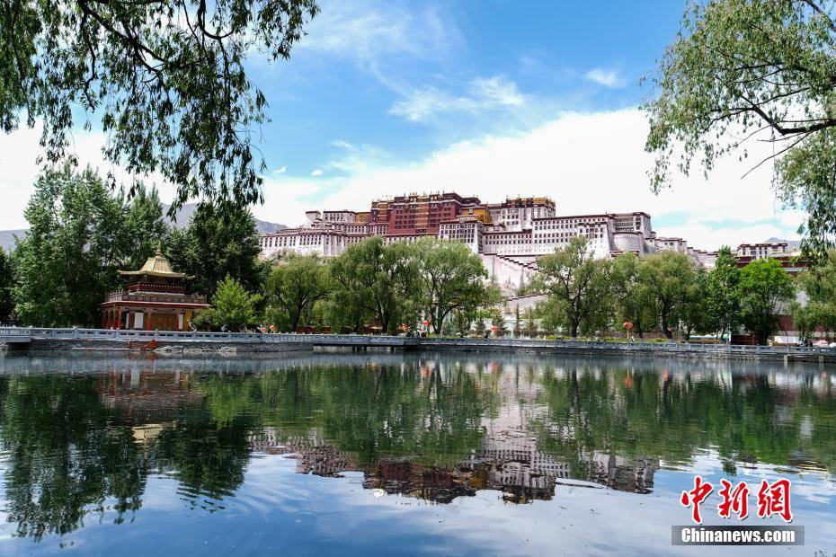 5月31日,世界文化遗产——布达拉宫倒影风光。每年的5月至10月是西藏的旅游旺季,5月31日,中新网记者在拉萨布达拉宫广场、大昭寺、八廓街等景点、景区看到,前来“打卡”参观游览、拍摄藏装写真的游客络绎不绝,旅游市场火热。