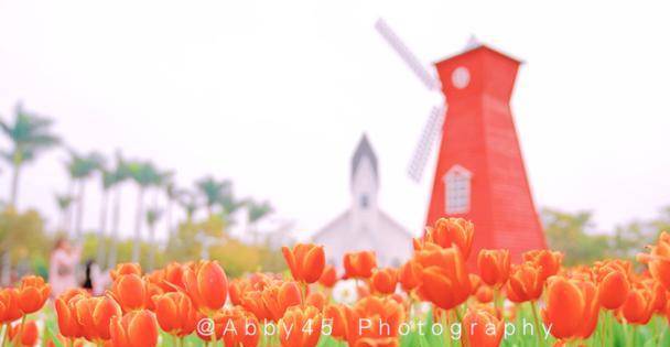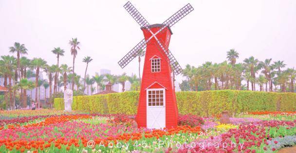 看到这大风车和绽放的郁金香,你是不是会想到荷兰?其实这是园博苑里的新加坡园,也是今年郁金香花展的地方。