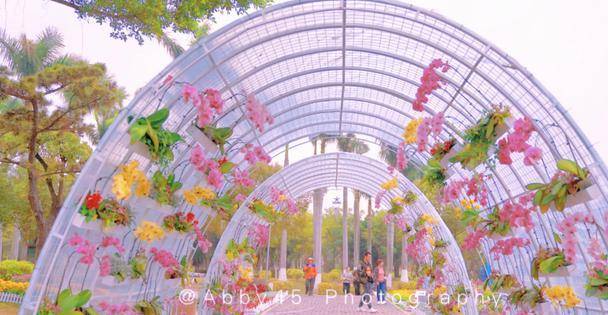 除了郁金香,边上还有一个兰花迷你隧道,五颜六色花开正艳,不仅是人在画中游,更是人在花中走。感觉整个世界因为缤纷灿烂的鲜花,都变得明媚起来。