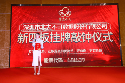 近日,非去不可(深圳)更在深圳前海股权交易中心举行了盛大的新四板挂牌仪式。这一重要时刻被众多业界人士和媒体瞩目,新四板挂牌仪式现场热闹非凡,而在新四板挂牌仪式上,非去不可(深圳)数据股份有限公司执行副总裁王宇也发表了致词演说,分享了品牌的发展蓝图和愿景。