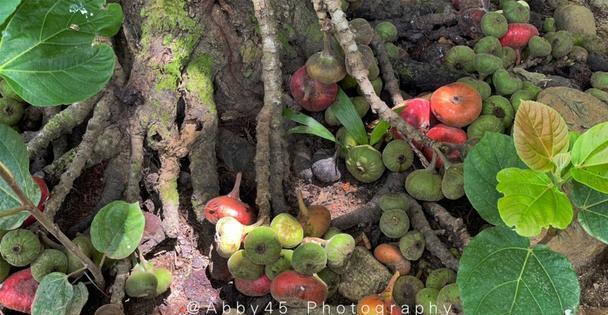 而这个果实生于树干基部或老茎短枝上,大而梨形或扁球形至陀螺形的植物叫大果榕,很像无花果,也被人们称作大无花果。大果榕全身都是宝,果实、花序托、嫩茎尖和嫩叶都是可以食用的。人们会在春季采摘大果榕那些略带红色的嫩叶和嫩尖来食用,其食用方法是多种多样的,凉拌、炒食、做汤,各具风味。在夏季或者秋季,采摘大果榕的榕果生食,也可以制成果酱、饮料,或者是用来酿酒。