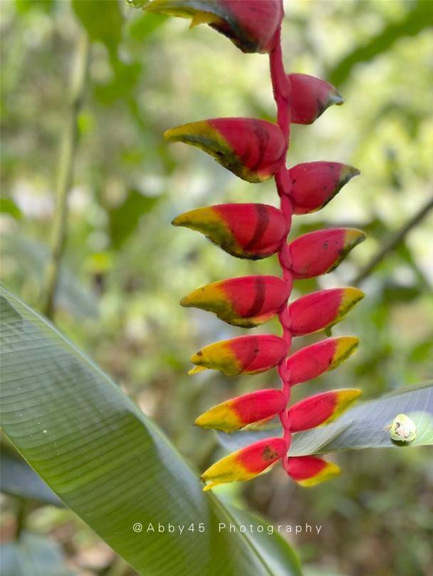整个植物园里到处是奇花异草。好多植物的名字都是第一次听说,比如:见血封喉、独木成林等。参观的过程中听讲解员说背后的故事,涨见识,使我们的旅途更有意义。上图这个色彩鲜艳的是花丛里的富贵鸟——金嘴蝎尾蕉,由于其花形似鸟喙状,又似五彩缤纷的鞭炮,还有飞黄腾达的寓意,因而在东南亚一带极受人们的欢迎,特别是在春节,华人喜欢将其挂在门上,增添喜庆色彩。