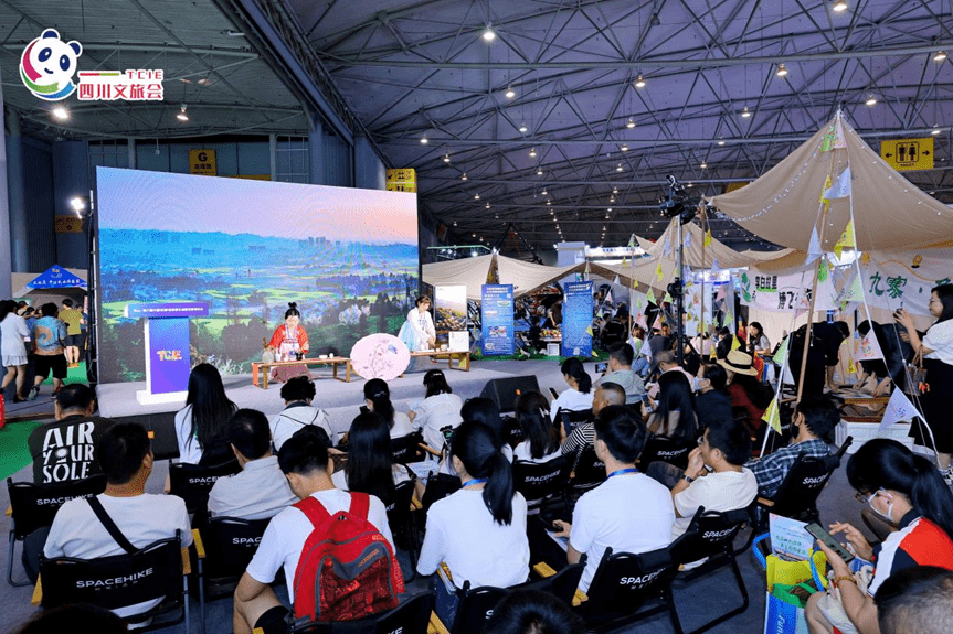 在“安逸游四川”沙龙区,峨眉山、九寨沟、黄龙等川内优质景区以露营+旅游+文创的方式集中亮相,同期推出的四川清音、峨眉山茶艺表演、理县特色歌舞、国家级非遗体验等精彩表演,为广大观众带了一场集视觉及听觉的双重体验。