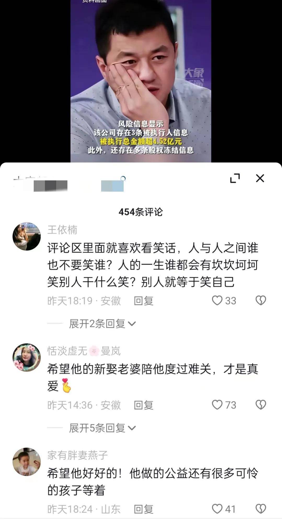 李亚鹏承认自己欠了很多钱,远不止网上说的4000万!如果有人感兴趣或者高兴,可以去看看。我跟别人合作的公司被执行了4.52亿元。我认购了公司30%的股份,也是被执行人。