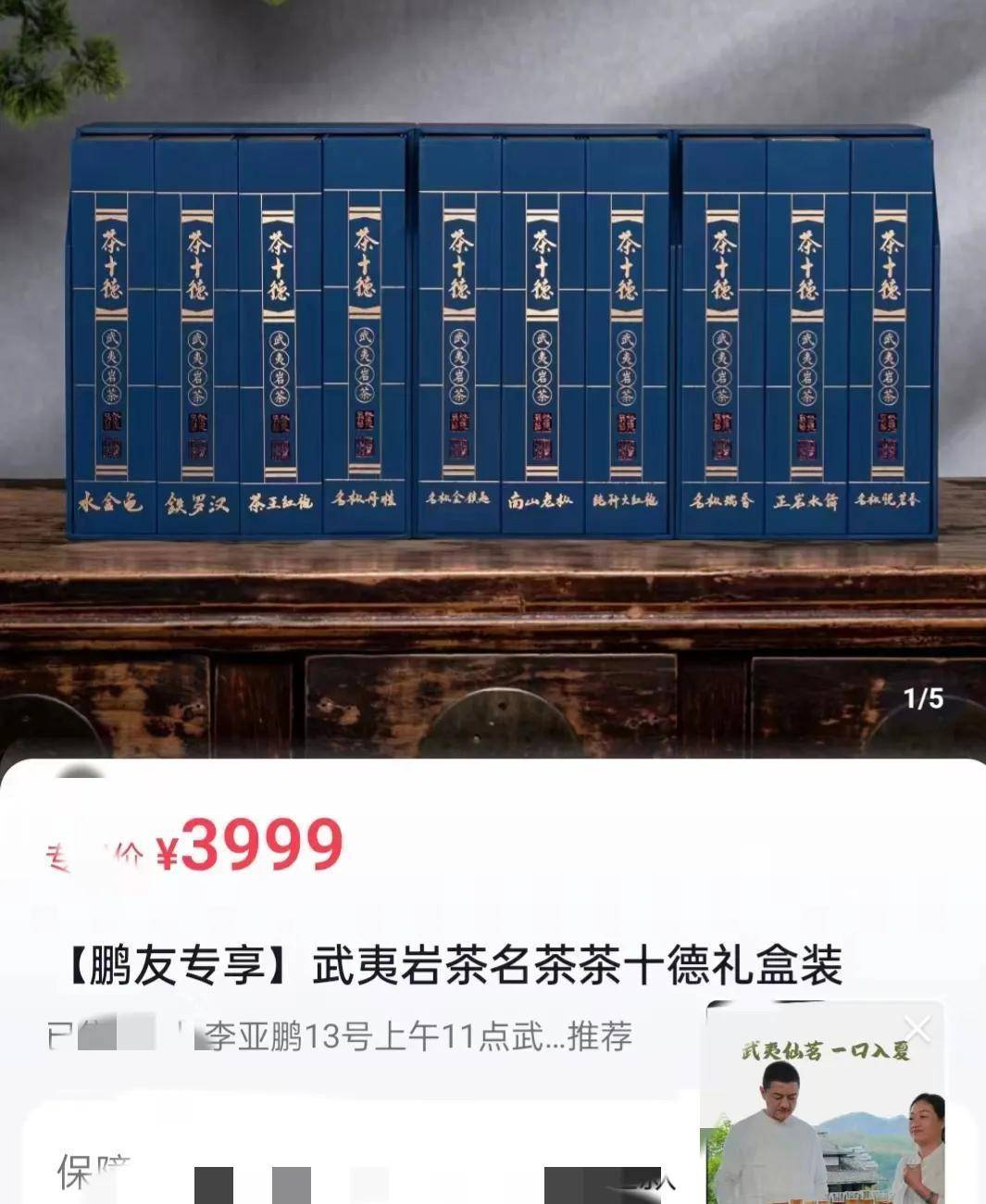 快速打开外观预测错误在武夷山的第3天,李亚鹏终于开始出现在镜头前,效果不是很好。应该是自己的预判失误!第一次卖高档茶,价格定得太高没人理。高端武夷山岩茶价格相对较高,为3999元。李亚鹏表示,这个价格相对于市场价来说还是比较低的。如果有兴趣喝茶的朋友今天买了,反手卖给别人也能赚大钱。实体店10盒武夷岩茶今日立减3000元,数量仅限2000单!但令人非常失望的是,2000份订单中只卖出了10份。李亚鹏惊呼摄影室里有两万人。难道只有10个人懂茶?