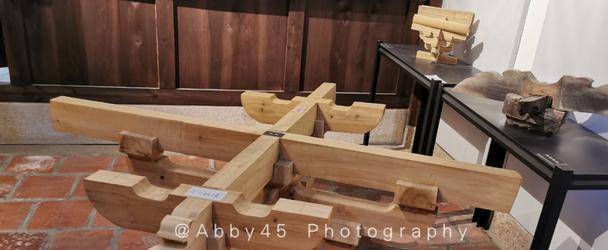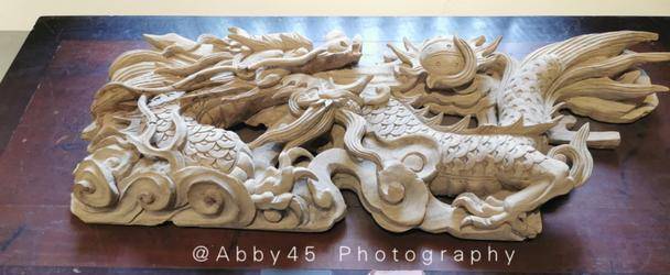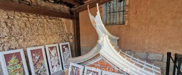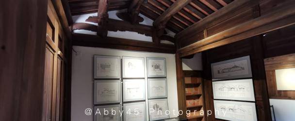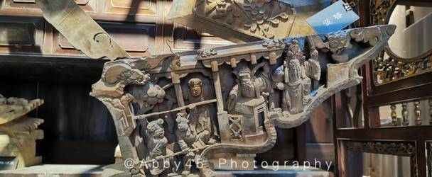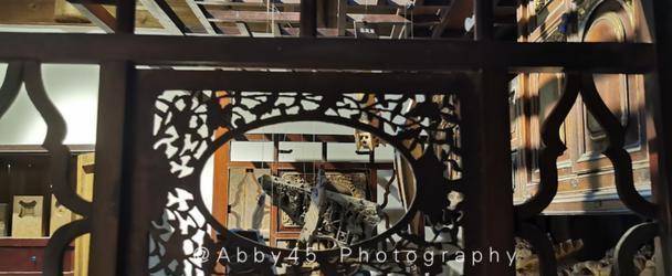 等走到正面一看,更多精雕细刻的木质建筑构件,错落有致悬挂着,别有一番滋味。