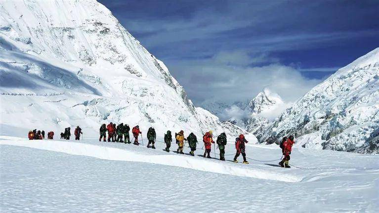 在营地休整后,大家再次出发。一路上不停地上升、下降,陡峭的洛子壁和没完没了的冰壁,非常耗费体力。再加上高原反应,大家感受到攀登珠峰的艰难。