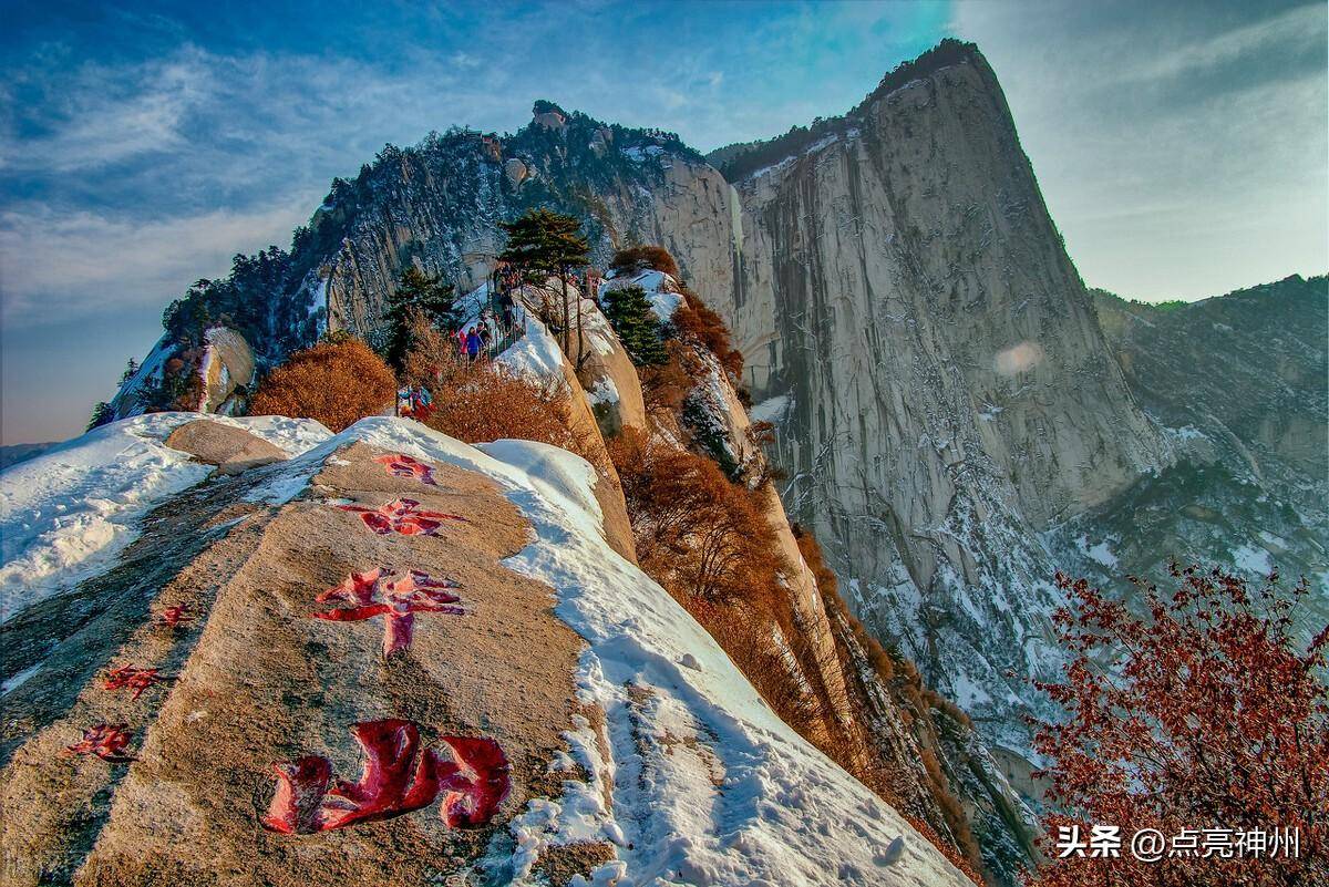 华山位于陕西省渭南市华阴县境内。华山是五岳中最高的山,险峻异常,自古就有“奇险天下第一山”的说法。华夏的“华”字,便是源于华山,所以它也有“华夏之根”的说法。