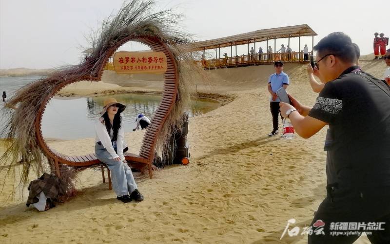 游客在罗布人村寨景区拍照打卡。石榴云/新疆日报记者 贾春霞摄