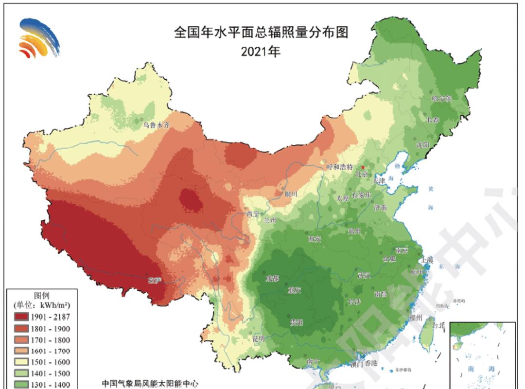 根据中国可再生能源学会光伏专业委员会统计数据,我国太阳能总辐射资源丰富,总体呈“高原大于平原、西部干燥区大于东部湿润区”的分布特点。其中,青藏高原最为丰富,年总辐射量超过1800 kWh/m2,部分地区甚至超过2000 kWh/m2。