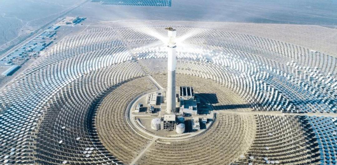 文中提到的“超级镜子发电站”——首航高科敦煌100兆瓦熔盐塔式光热电站就运用了最先进的CSP技术建造而成。发电站装备了1.2万多面定日镜,以同心圆状围绕着260米高的吸热塔,镜场总反射面积达140多万平方米,设计年发电量达3.9亿千瓦时。敦煌100兆瓦熔盐塔式光热电站借助良好的电网基础优势,将新能源不断输往全国各地。