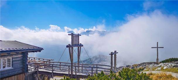 看到远处云雾缭绕的观景台了吗?原来奥地利的"五指山",是五指形状的悬空观景台。听说天气好的时候,可以从另一个角度欣赏哈尔施塔特天堂小镇的美景。