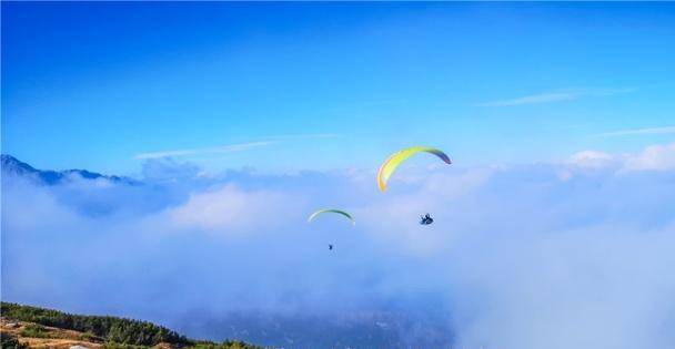 山上还有专业的滑翔伞俱乐部,感兴趣挑战的朋友也可以尝试下。一直觉得这么大雾应该没人跳了,刚一转身,咻咻两个伞就从头顶飞过,真帅气。